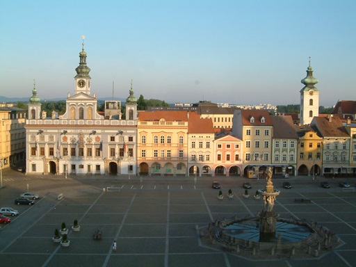 布德札維乃南波希米亞最大城市,市中心 ▲「那美斯提‧普利米斯拉‧歐他卡拉二世廣場」是波希米亞最大的廣場(133m×133m),此一歷史中心四周有哥德式、文藝復興式、巴洛克式等等富貴人家之房舍,非常漂亮,廣場之西北及西南方各有部分殘存之遺跡,令人生思古之幽情。