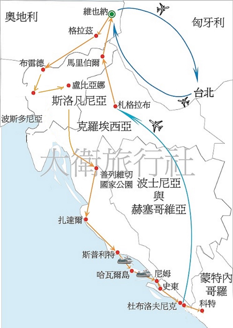 ●巴爾幹半島上國家分布狹長,國際段安排國內航空公司維也納直飛航班,省去轉機候機時間,搭配一段克羅埃西亞★國內班機,安心又省時。