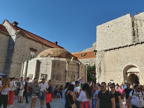 午後返回杜布洛夫尼克。蕭伯納給了它是找尋人間天堂者的必經之處的美名,杜城亦是地中海最吸引人的城市之一,1979年被列為世界文化遺產名城一員(UNESCO),除了保存良好的遺跡與天然美景外,純樸的當地民情也令人心喜。漫步小巷之中,彷彿進入時光隧道,置身於中古世紀的歐洲,參觀 ▲聖布雷瑟教堂、▲歐諾佛里歐水池、▲法蘭西斯科修道院、★聖方濟修道院藥局等地方。並登上 ★古城牆俯瞰紅瓦小屋,加上地中海的藍天碧海,人間仙境不過如此。