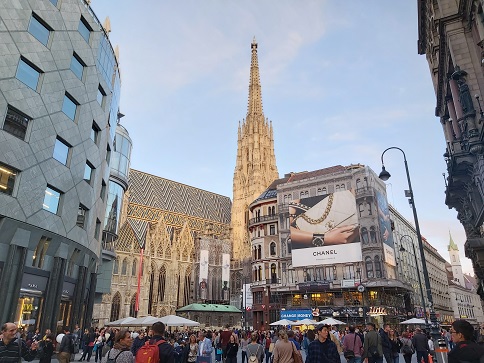 之後返回奧地利維也納,跟著領隊前往Karntner Str.最熱鬧之觀光大街,香奈兒、LV精品店、餐廳、咖啡店,及美麗的商店街群聚,高聳的▲聖史帝芬大教堂及▲歌劇院都是拍照的好地方,或在咖啡廳喝杯正統維也納咖啡,維也納市區做最後的巡禮,夜宿維也納。