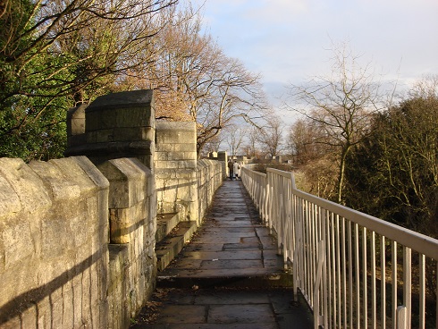 約克古城號稱歐洲最美麗的城市之一,古城四周為五公里長之城牆,春天(英國人所謂之春天乃攝氏三至八度)走訪的觀光客,常為中世紀牆邊盛開之金黃色水仙花 驚豔地喜不自勝,微風吹拂,水仙花海皆頻頻點頭,猶如向長者恭敬地致意,面對此一鏡頭,您今生別想忘記了。約克美景不僅於此,漫步城牆頂端步道誠乃人生一 大樂事,約克典雅精緻的生活方式盡收眼底,行至城南,眼望流經約克之兩條河流,烏斯河(River Ouse)及佛斯河(River Foss),潺潺的流水細訴著久遠的歷史,約克也是靠港口起家發跡的。