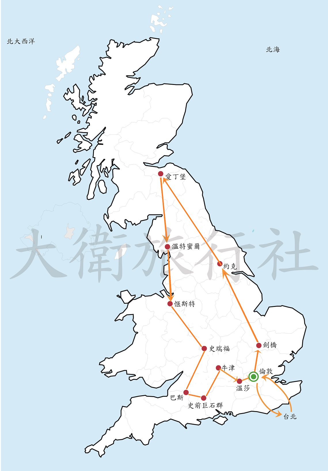 愛丁堡-(144公里)-格雷納格林-(100公里)-溫特蜜爾-(138公里)-利物浦